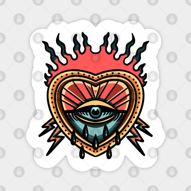 Burning Heart And Thunder Tattoo Magnet Teepublic